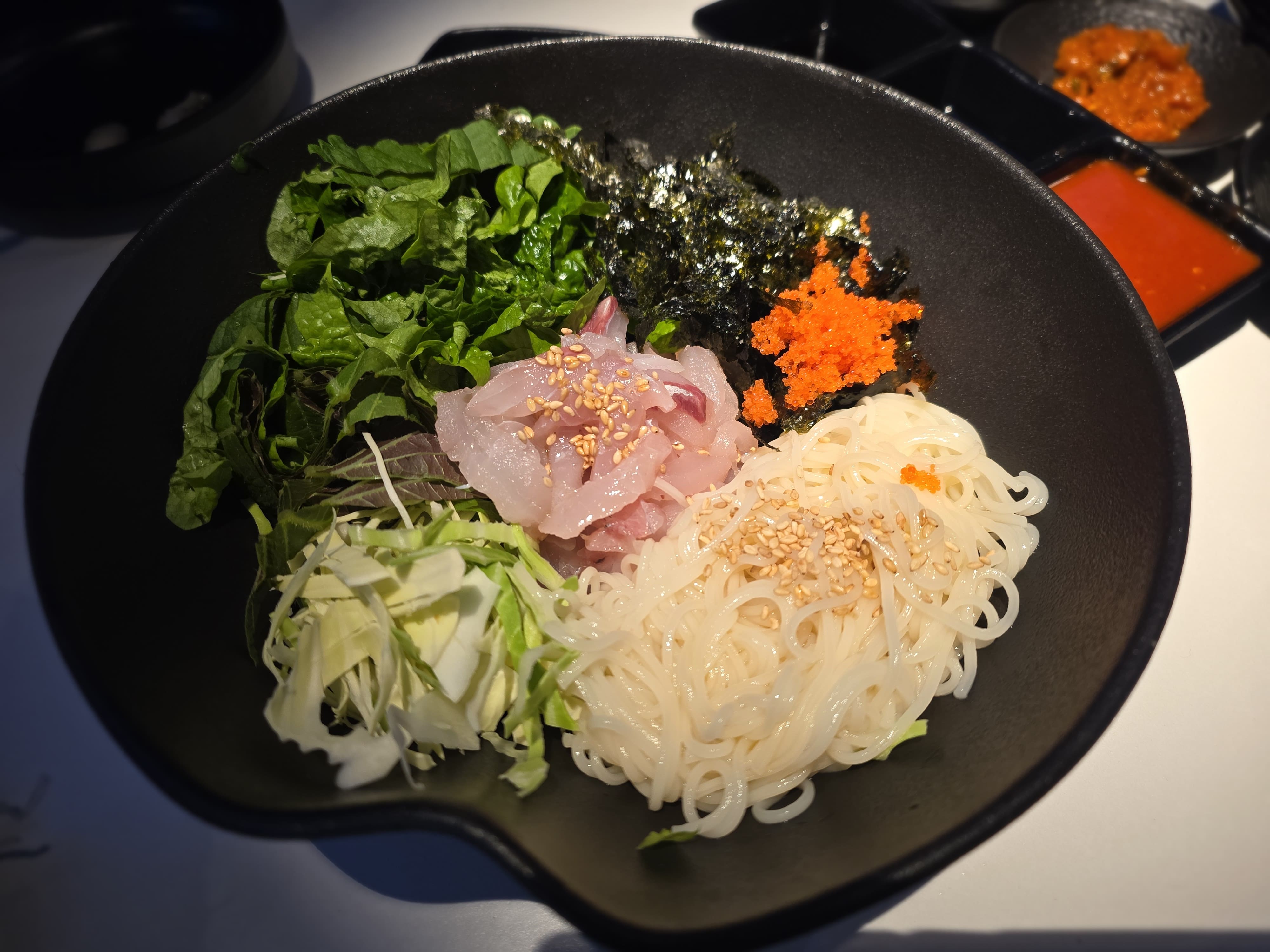 마지막으로 식사로 시킨 대게 따지장 덮밥과 회국수!!!